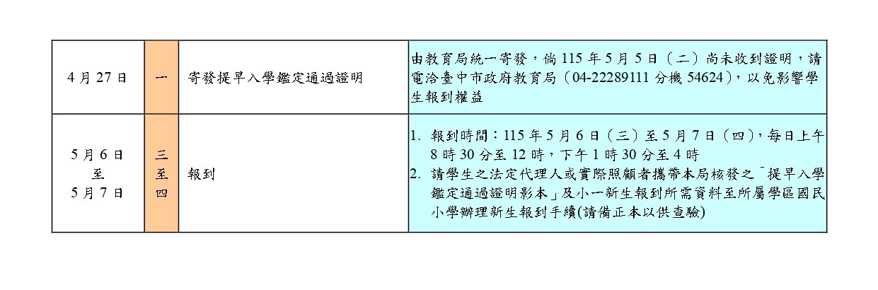 【特教】臺中市115學年度國民小學資賦優異學生提早入學鑑定